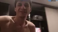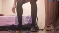 Crossdresser in Black Stockings Strokes Cock with Dildo